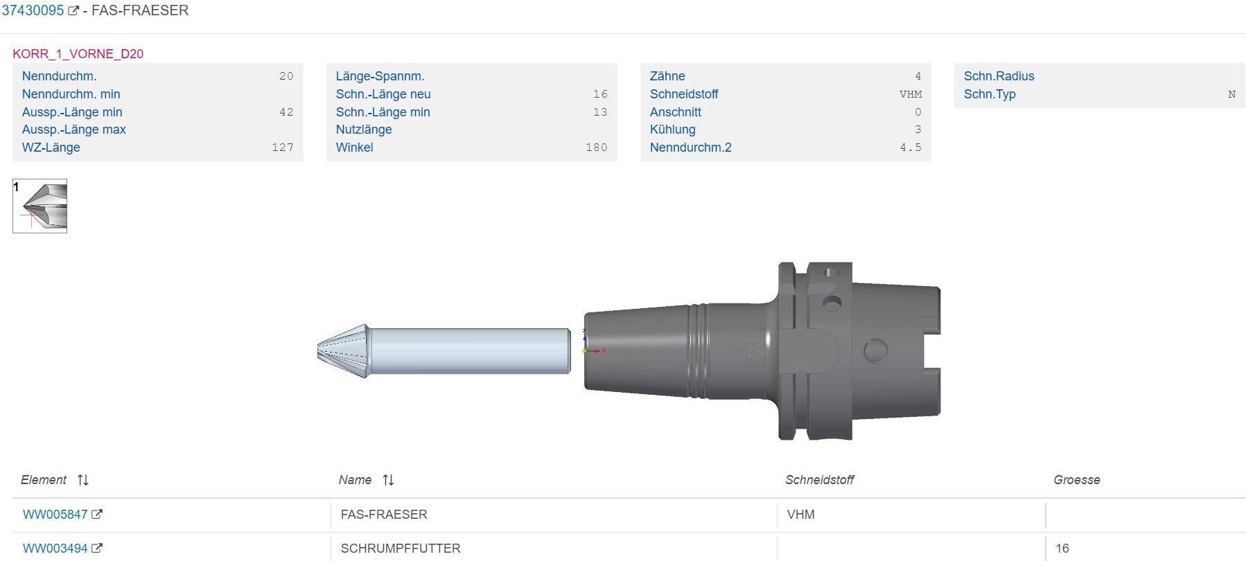 Bei Bedarf werden die Werkzeugdaten mit Zusatzinformationen wie z.B. Übermaße, Grenzdrehzahlen, Werkzeuggewichte und Standzeiten angereichert.